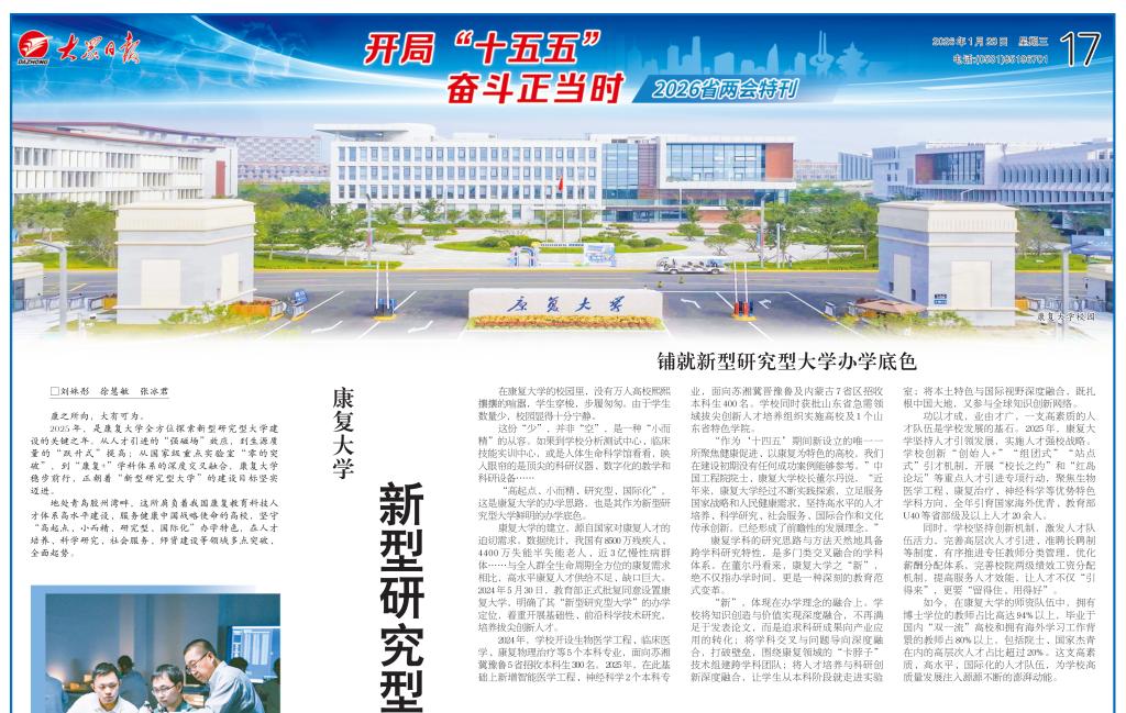 2026省两会特刊:康复大学 新型研究型大学的特色破局之道