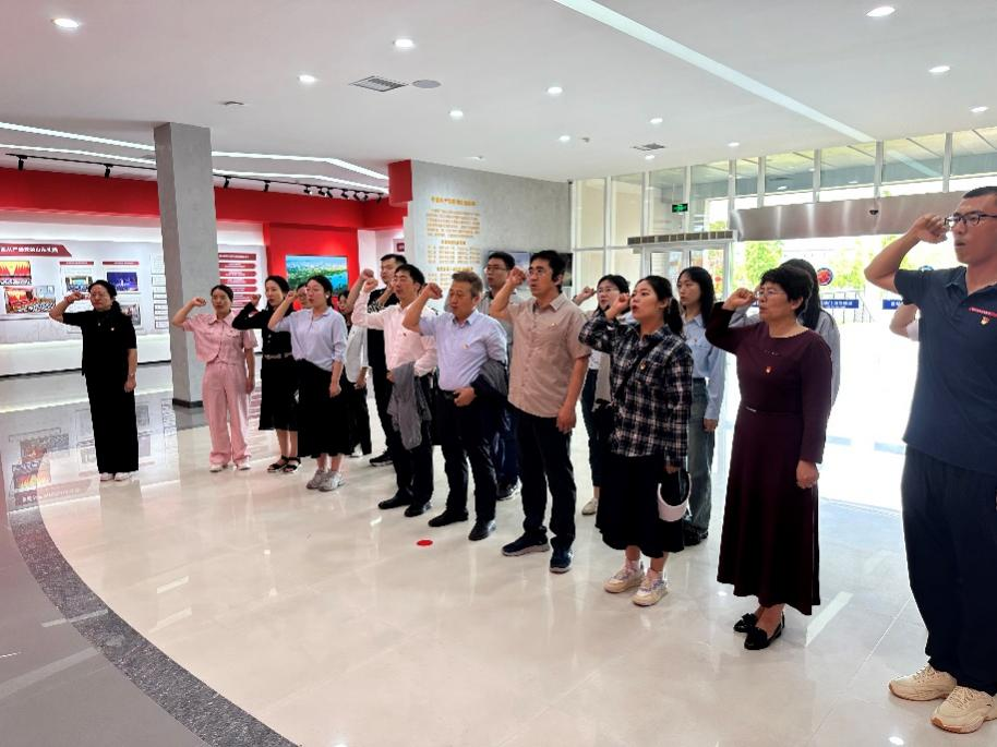 在警示教育基地,全体党员重温了习近平总书记有关党风廉政建设、党的自我革命相关论述,并参观了5个展区。通过图文并茂、声像俱备的展览形式,使参观活动的党员心灵受到极大震撼,进一步增强了党纪学习教育的针对性和说服力。最后,全体党员重温了中国共产党入党誓词。