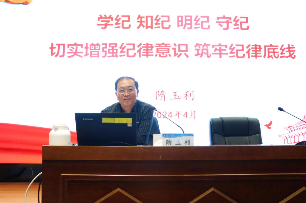 4月24日上午,学校邀请省纪委隋玉利同志为全体党员作《学纪 知纪 明纪 守纪 切实增强纪律意识 筑牢纪律底线》专题辅导。从《条例》的修订背景、重要意义、整体内容以及具体贯彻实施要求等方面,作了系统的梳理解读。